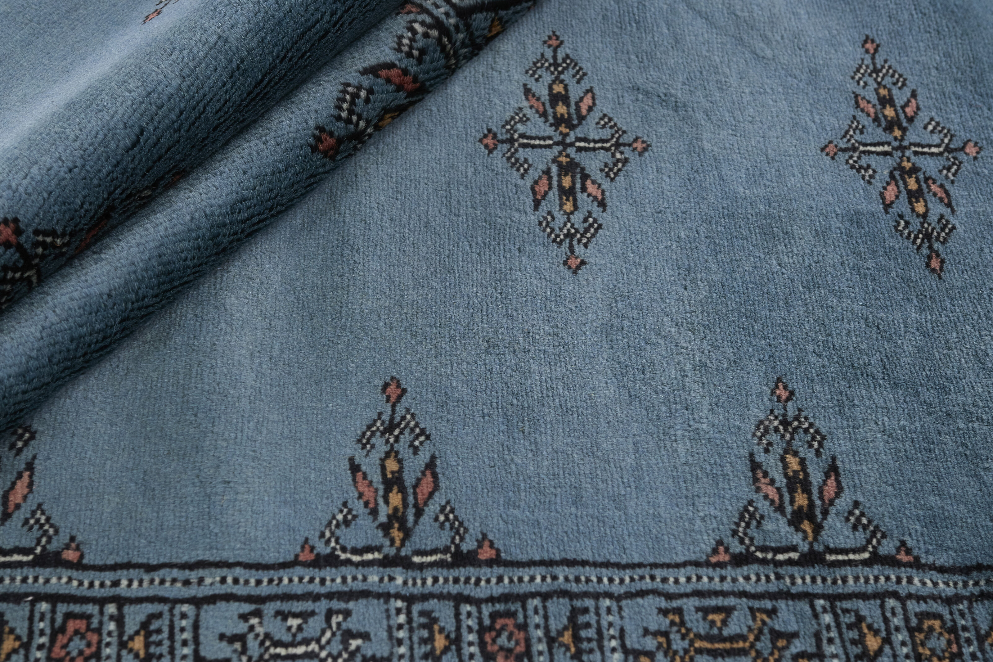 The 3-Ply rugs are produced in Lahore, Pakistan’s second largest city, which is also is the centre of the country’s hand knotted rug production. The rugs most often have the Tekke and Bokara patterns, which were originally inspired by patterns from Turkmenistan. The people of the Tekke Tribe, which was the largest nomadic tribe in Turkmenistan, were known as very industrious rug producers. The term Ply indicates the number of threads wound together to produce the yarn itself; 3-Ply thus guarantees that the yarn consists of three threads wound together. 3-Ply rugs appear thicker and softer than 2-Ply, as more wool is used to produce the rug. The quality of wool is particularly soft and shining, and the warm-coloured patterns are simple and harmonious.