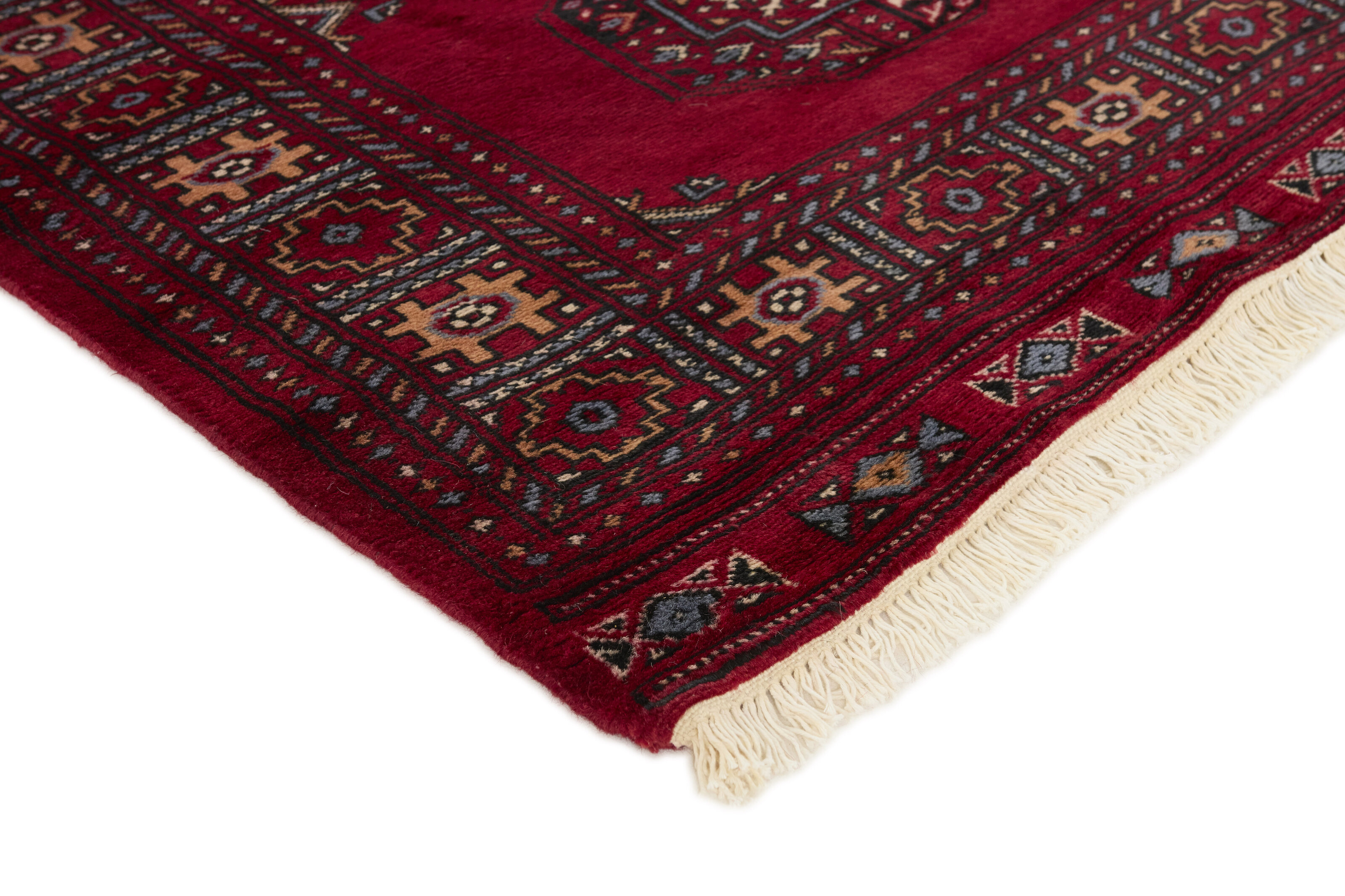 The 3-Ply rugs are produced in Lahore, Pakistan’s second largest city, which is also is the centre of the country’s hand knotted rug production. The rugs most often have the Tekke and Bokara patterns, which were originally inspired by patterns from Turkmenistan. The people of the Tekke Tribe, which was the largest nomadic tribe in Turkmenistan, were known as very industrious rug producers. The term Ply indicates the number of threads wound together to produce the yarn itself; 3-Ply thus guarantees that the yarn consists of three threads wound together. 3-Ply rugs appear thicker and softer than 2-Ply, as more wool is used to produce the rug. The quality of wool is particularly soft and shining, and the warm-coloured patterns are simple and harmonious.