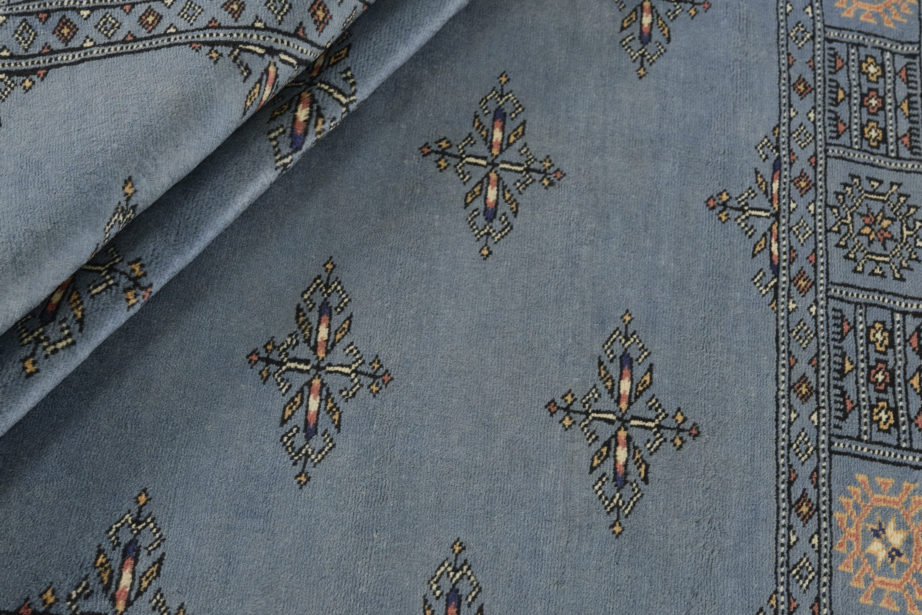 The 3-Ply rugs are produced in Lahore, Pakistan’s second largest city, which is also is the centre of the country’s hand knotted rug production. The rugs most often have the Tekke and Bokara patterns, which were originally inspired by patterns from Turkmenistan. The people of the Tekke Tribe, which was the largest nomadic tribe in Turkmenistan, were known as very industrious rug producers. The term Ply indicates the number of threads wound together to produce the yarn itself; 3-Ply thus guarantees that the yarn consists of three threads wound together. 3-Ply rugs appear thicker and softer than 2-Ply, as more wool is used to produce the rug. The quality of wool is particularly soft and shining, and the warm-coloured patterns are simple and harmonious.