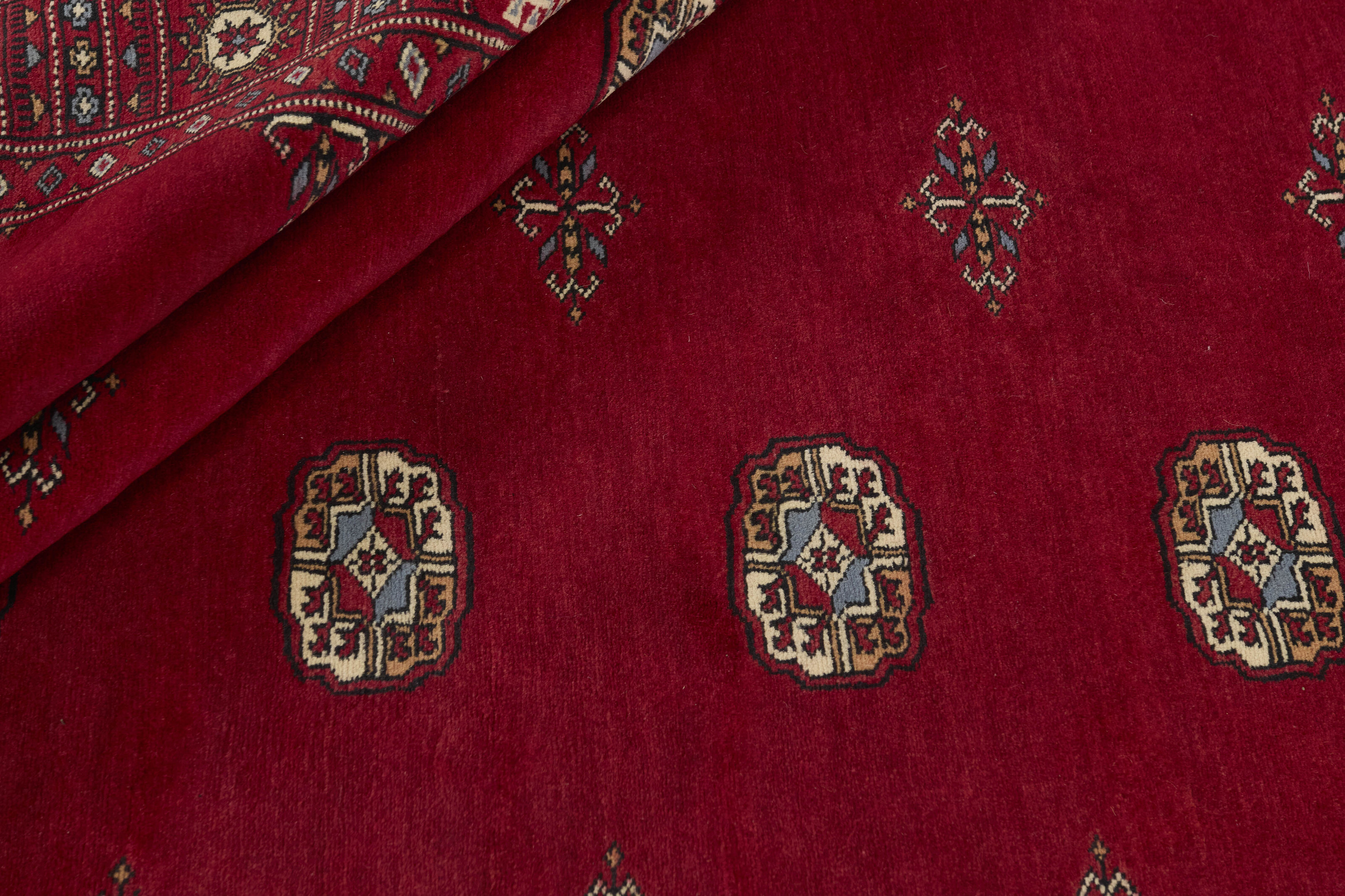 The 3-Ply rugs are produced in Lahore, Pakistan’s second largest city, which is also is the centre of the country’s hand knotted rug production. The rugs most often have the Tekke and Bokara patterns, which were originally inspired by patterns from Turkmenistan. The people of the Tekke Tribe, which was the largest nomadic tribe in Turkmenistan, were known as very industrious rug producers. The term Ply indicates the number of threads wound together to produce the yarn itself; 3-Ply thus guarantees that the yarn consists of three threads wound together. 3-Ply rugs appear thicker and softer than 2-Ply, as more wool is used to produce the rug. The quality of wool is particularly soft and shining, and the warm-coloured patterns are simple and harmonious.