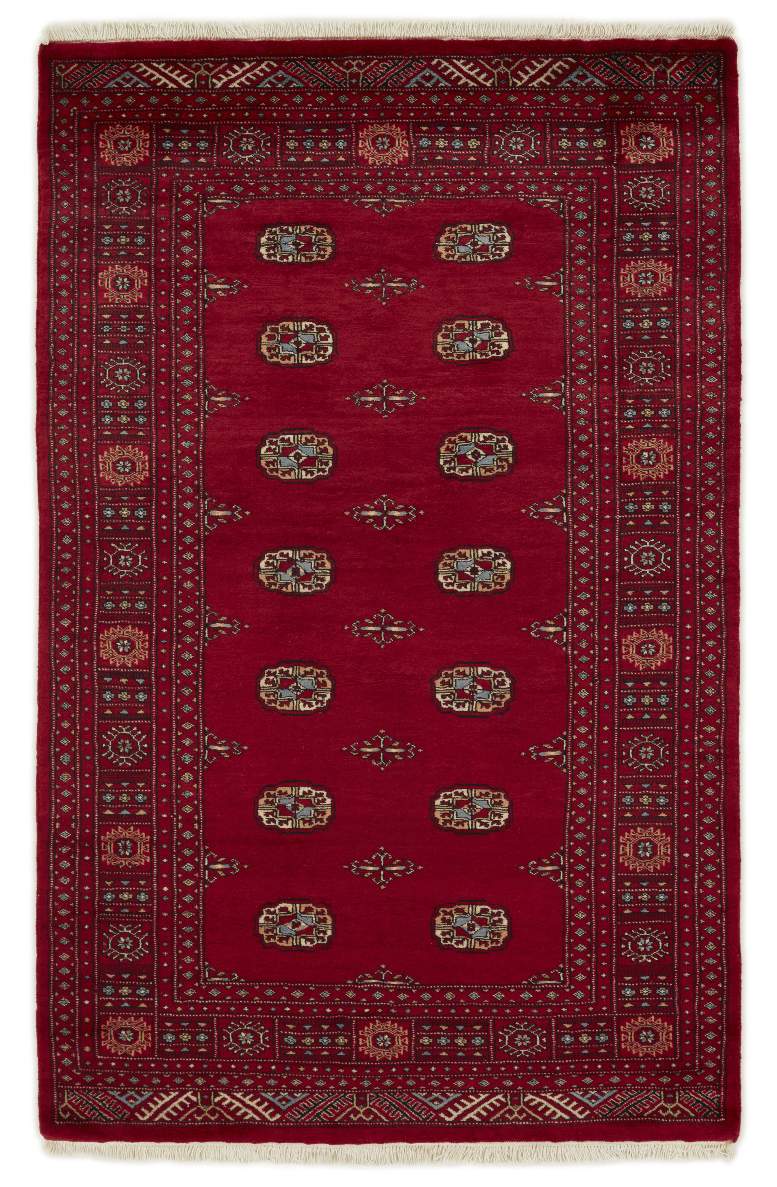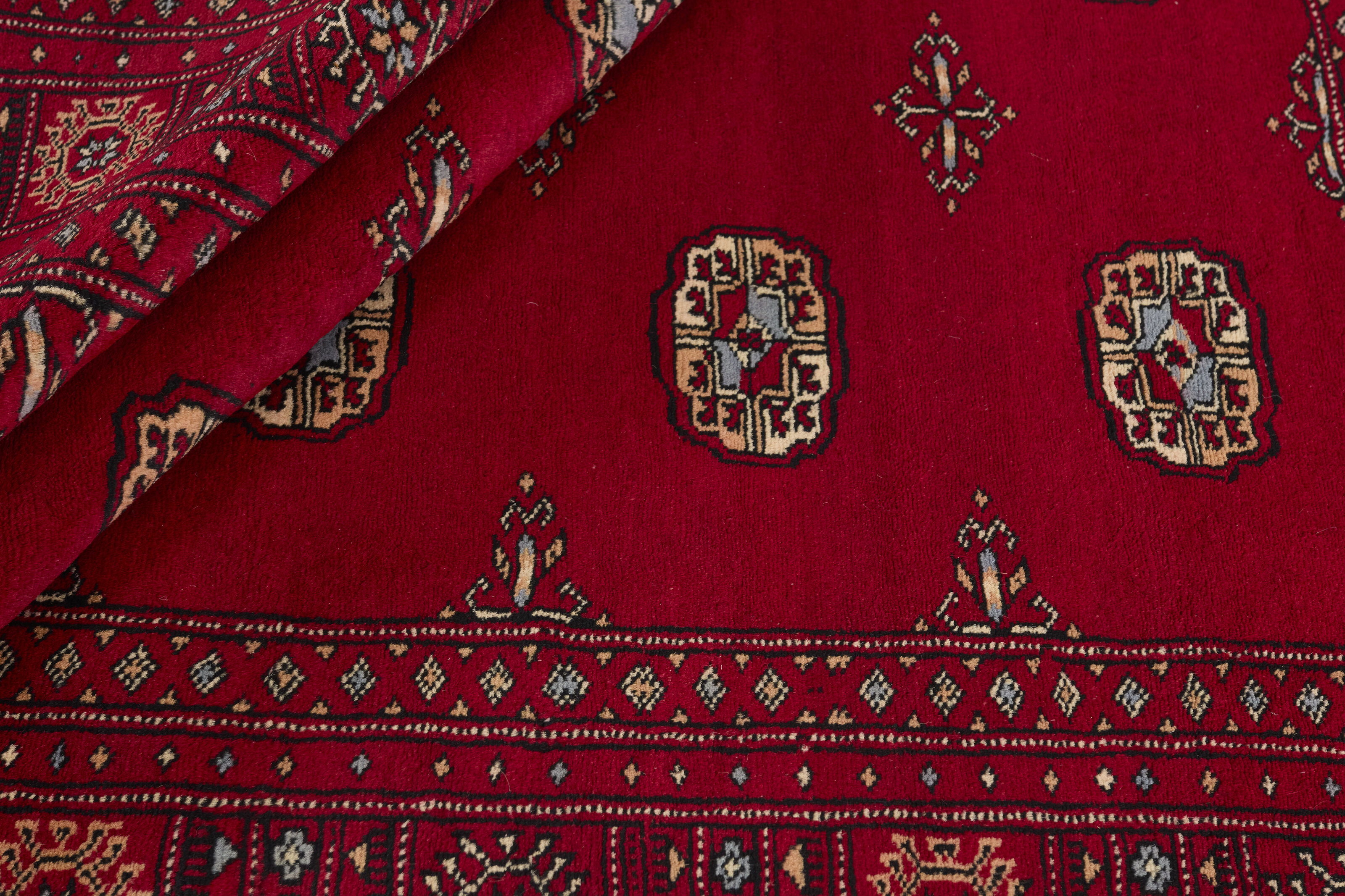 The 3-Ply rugs are produced in Lahore, Pakistan’s second largest city, which is also is the centre of the country’s hand knotted rug production. The rugs most often have the Tekke and Bokara patterns, which were originally inspired by patterns from Turkmenistan. The people of the Tekke Tribe, which was the largest nomadic tribe in Turkmenistan, were known as very industrious rug producers. The term Ply indicates the number of threads wound together to produce the yarn itself; 3-Ply thus guarantees that the yarn consists of three threads wound together. 3-Ply rugs appear thicker and softer than 2-Ply, as more wool is used to produce the rug. The quality of wool is particularly soft and shining, and the warm-coloured patterns are simple and harmonious.