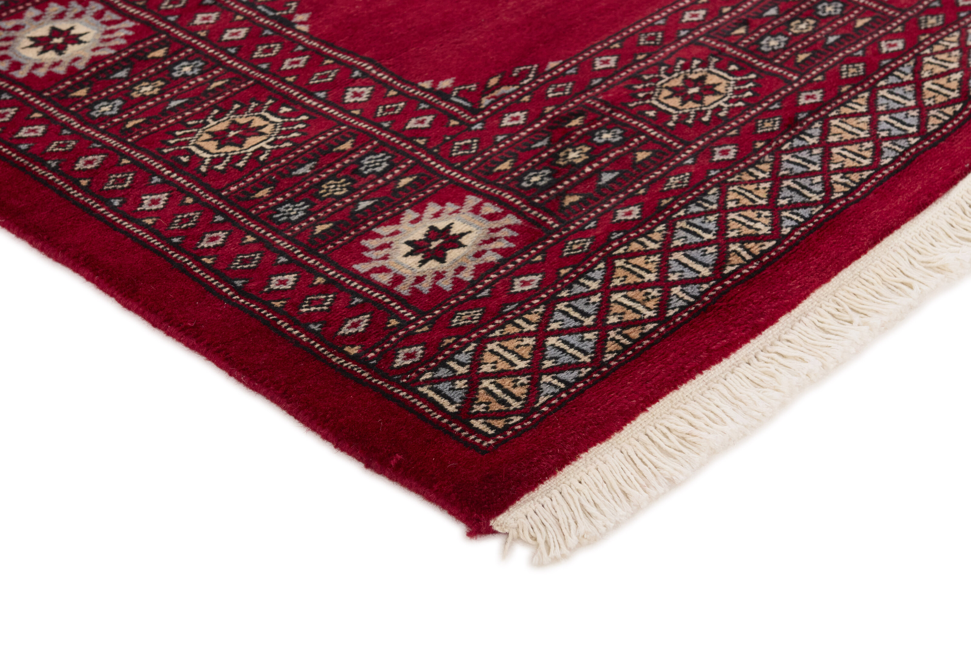 The 3-Ply rugs are produced in Lahore, Pakistan’s second largest city, which is also is the centre of the country’s hand knotted rug production. The rugs most often have the Tekke and Bokara patterns, which were originally inspired by patterns from Turkmenistan. The people of the Tekke Tribe, which was the largest nomadic tribe in Turkmenistan, were known as very industrious rug producers. The term Ply indicates the number of threads wound together to produce the yarn itself; 3-Ply thus guarantees that the yarn consists of three threads wound together. 3-Ply rugs appear thicker and softer than 2-Ply, as more wool is used to produce the rug. The quality of wool is particularly soft and shining, and the warm-coloured patterns are simple and harmonious.
