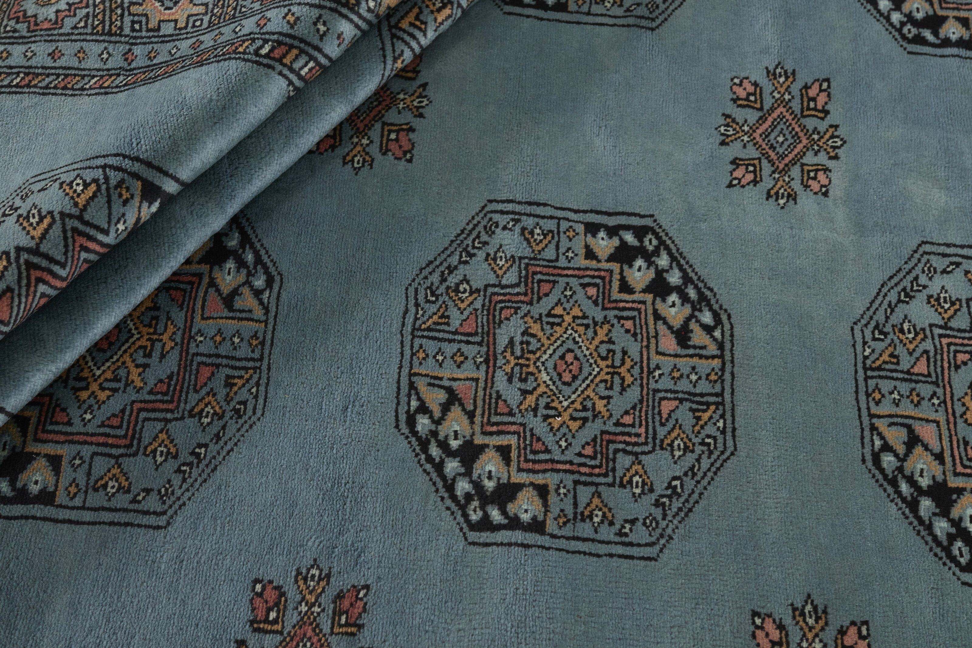 The 3-Ply rugs are produced in Lahore, Pakistan’s second largest city, which is also is the centre of the country’s hand knotted rug production. The rugs most often have the Tekke and Bokara patterns, which were originally inspired by patterns from Turkmenistan. The people of the Tekke Tribe, which was the largest nomadic tribe in Turkmenistan, were known as very industrious rug producers. The term Ply indicates the number of threads wound together to produce the yarn itself; 3-Ply thus guarantees that the yarn consists of three threads wound together. 3-Ply rugs appear thicker and softer than 2-Ply, as more wool is used to produce the rug. The quality of wool is particularly soft and shining, and the warm-coloured patterns are simple and harmonious.