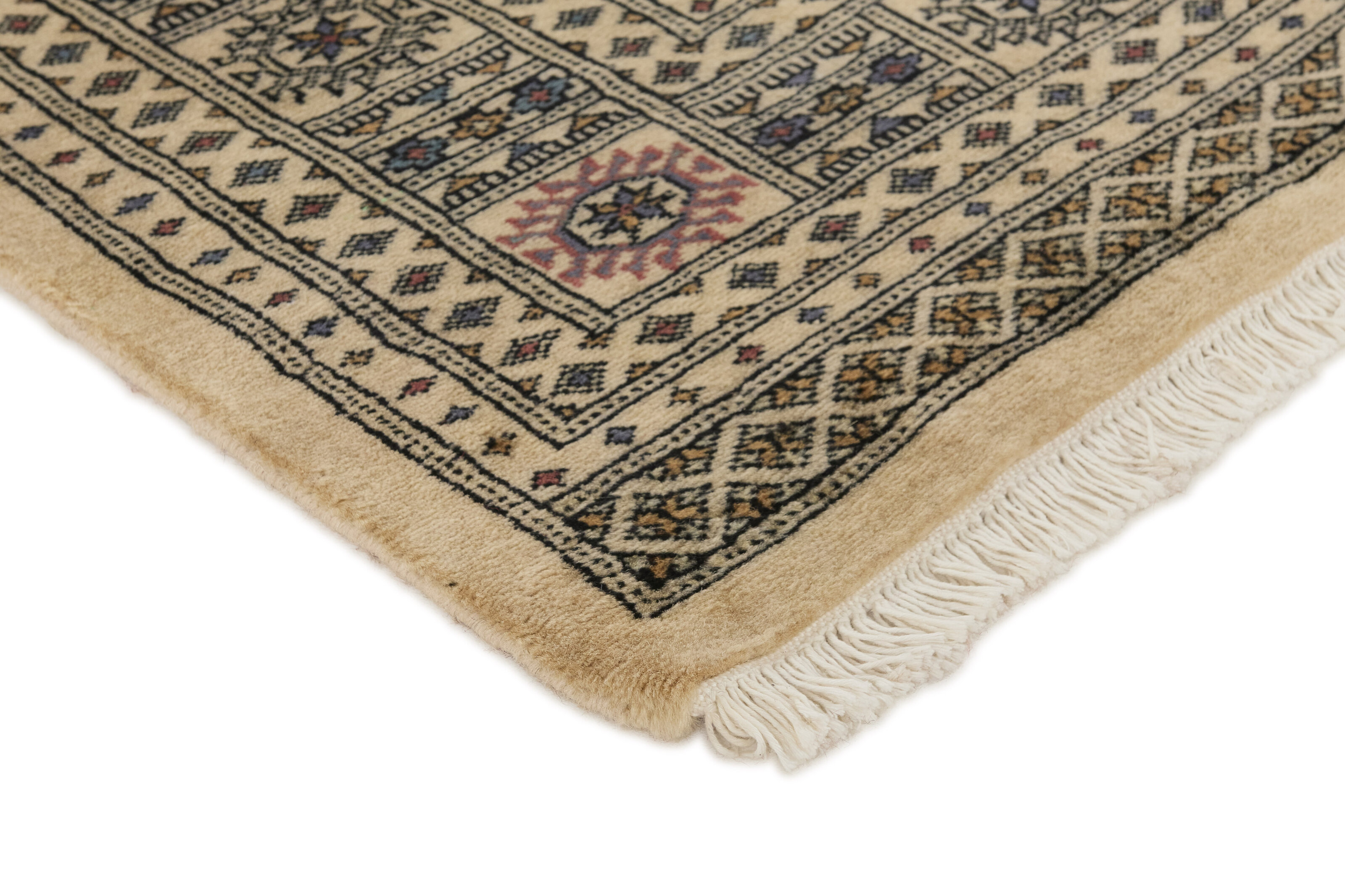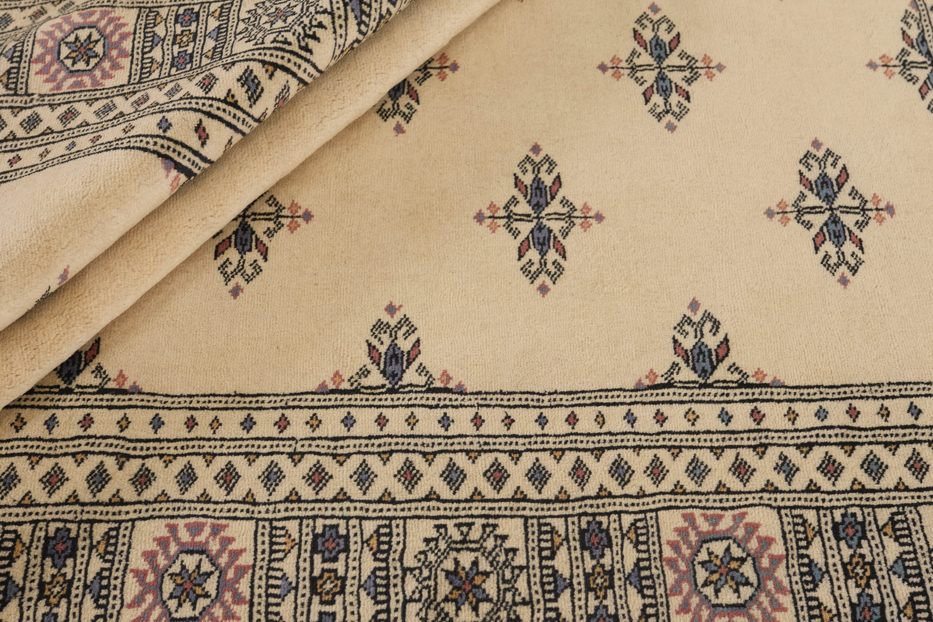 The 3-Ply rugs are produced in Lahore, Pakistan’s second largest city, which is also is the centre of the country’s hand knotted rug production. The rugs most often have the Tekke and Bokara patterns, which were originally inspired by patterns from Turkmenistan. The people of the Tekke Tribe, which was the largest nomadic tribe in Turkmenistan, were known as very industrious rug producers. The term Ply indicates the number of threads wound together to produce the yarn itself; 3-Ply thus guarantees that the yarn consists of three threads wound together. 3-Ply rugs appear thicker and softer than 2-Ply, as more wool is used to produce the rug. The quality of wool is particularly soft and shining, and the warm-coloured patterns are simple and harmonious.