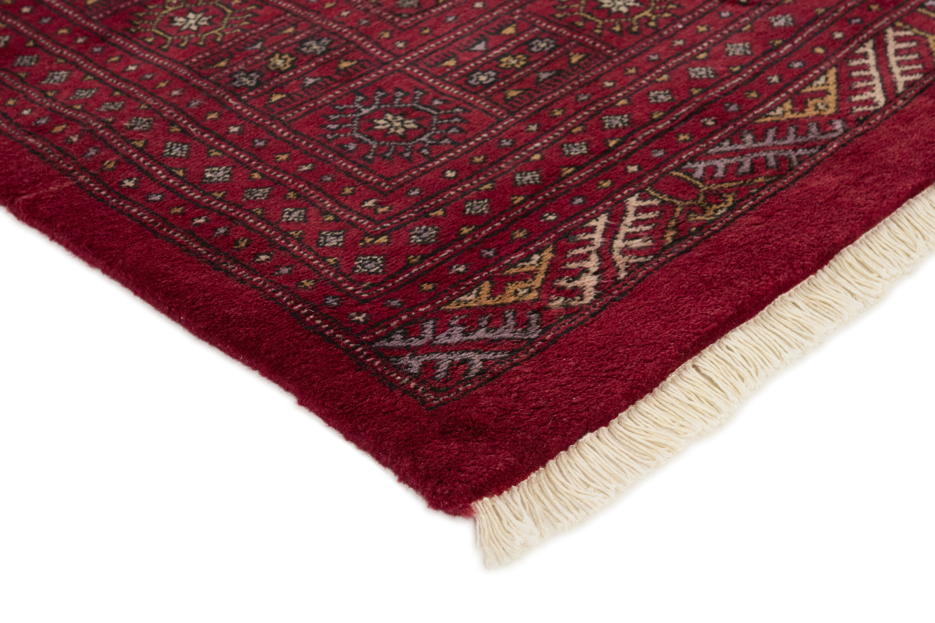 The 3-Ply rugs are produced in Lahore, Pakistan’s second largest city, which is also is the centre of the country’s hand knotted rug production. The rugs most often have the Tekke and Bokara patterns, which were originally inspired by patterns from Turkmenistan. The people of the Tekke Tribe, which was the largest nomadic tribe in Turkmenistan, were known as very industrious rug producers. The term Ply indicates the number of threads wound together to produce the yarn itself; 3-Ply thus guarantees that the yarn consists of three threads wound together. 3-Ply rugs appear thicker and softer than 2-Ply, as more wool is used to produce the rug. The quality of wool is particularly soft and shining, and the warm-coloured patterns are simple and harmonious.