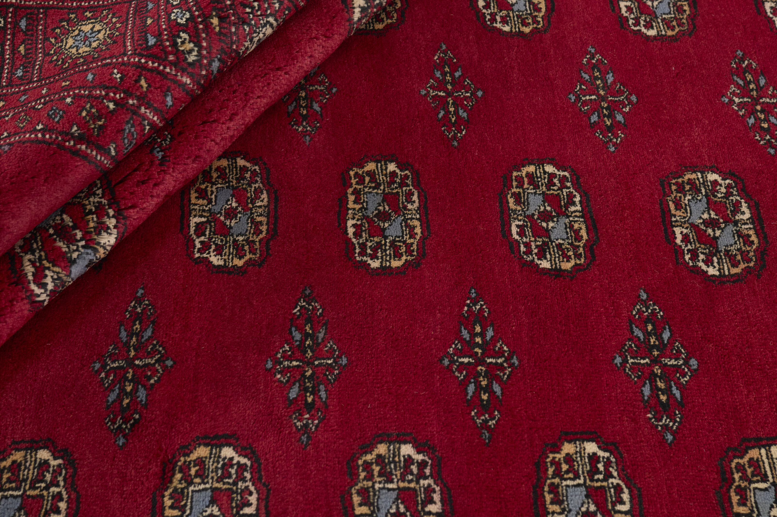 The 3-Ply rugs are produced in Lahore, Pakistan’s second largest city, which is also is the centre of the country’s hand knotted rug production. The rugs most often have the Tekke and Bokara patterns, which were originally inspired by patterns from Turkmenistan. The people of the Tekke Tribe, which was the largest nomadic tribe in Turkmenistan, were known as very industrious rug producers. The term Ply indicates the number of threads wound together to produce the yarn itself; 3-Ply thus guarantees that the yarn consists of three threads wound together. 3-Ply rugs appear thicker and softer than 2-Ply, as more wool is used to produce the rug. The quality of wool is particularly soft and shining, and the warm-coloured patterns are simple and harmonious.
