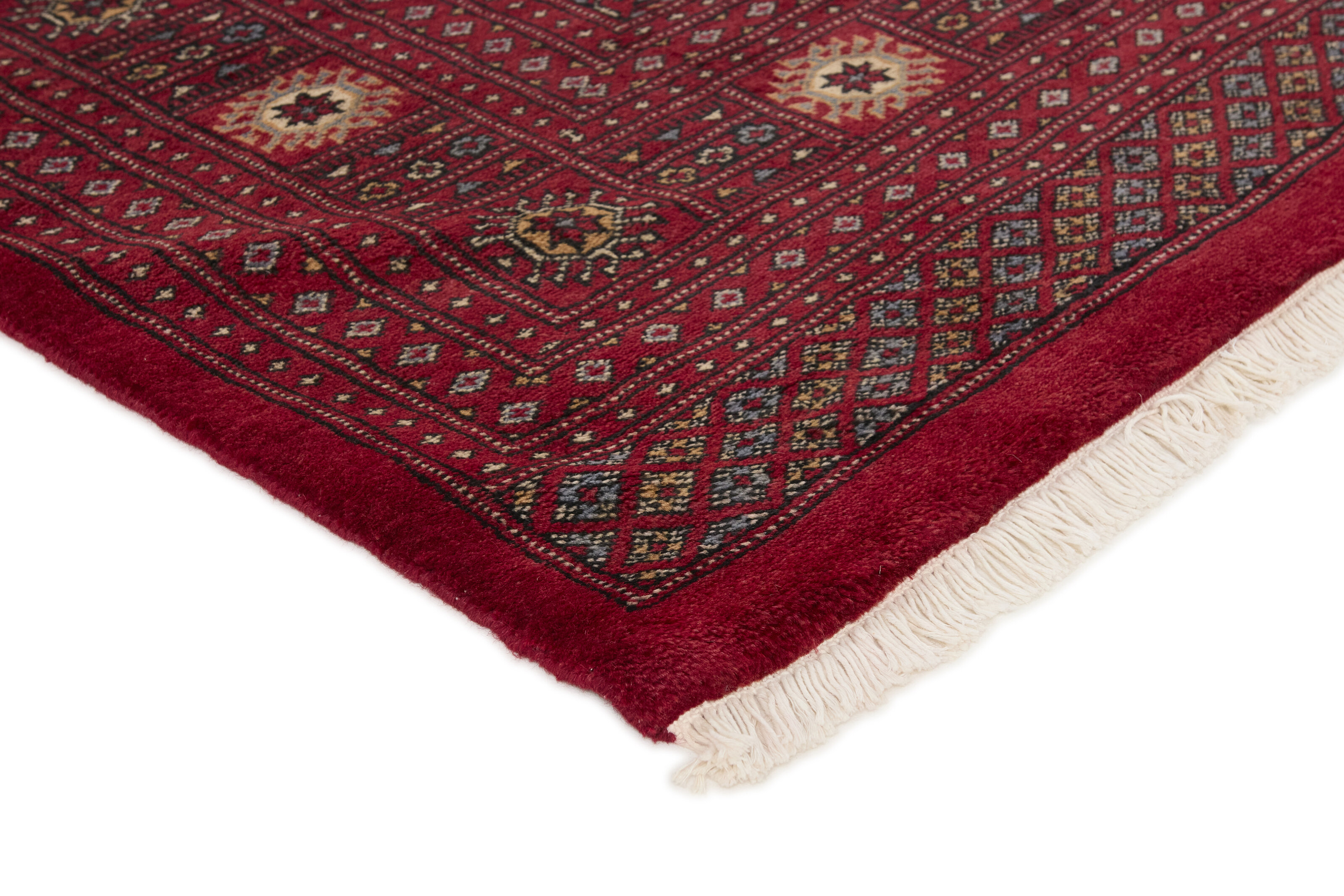 The 3-Ply rugs are produced in Lahore, Pakistan’s second largest city, which is also is the centre of the country’s hand knotted rug production. The rugs most often have the Tekke and Bokara patterns, which were originally inspired by patterns from Turkmenistan. The people of the Tekke Tribe, which was the largest nomadic tribe in Turkmenistan, were known as very industrious rug producers. The term Ply indicates the number of threads wound together to produce the yarn itself; 3-Ply thus guarantees that the yarn consists of three threads wound together. 3-Ply rugs appear thicker and softer than 2-Ply, as more wool is used to produce the rug. The quality of wool is particularly soft and shining, and the warm-coloured patterns are simple and harmonious.
