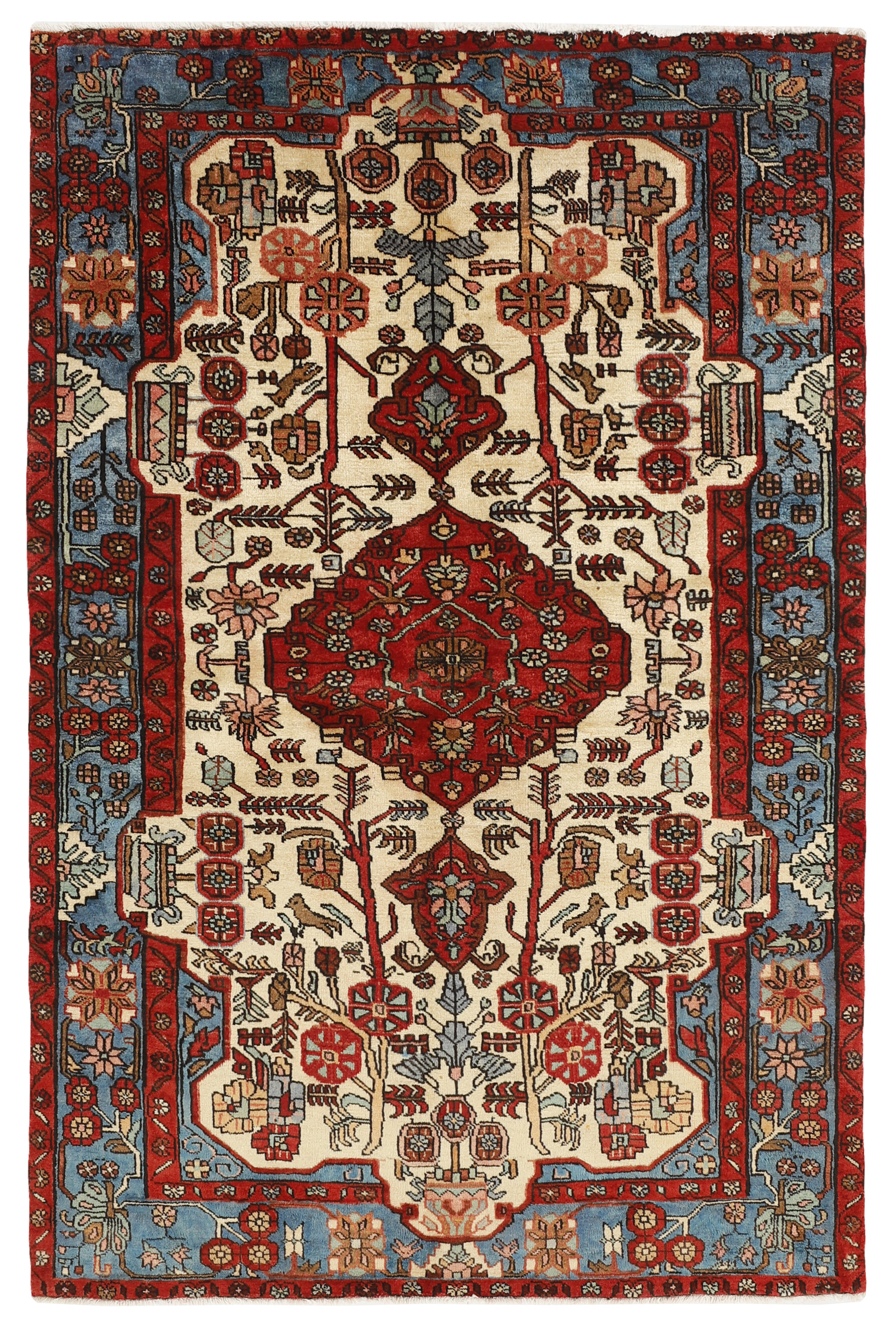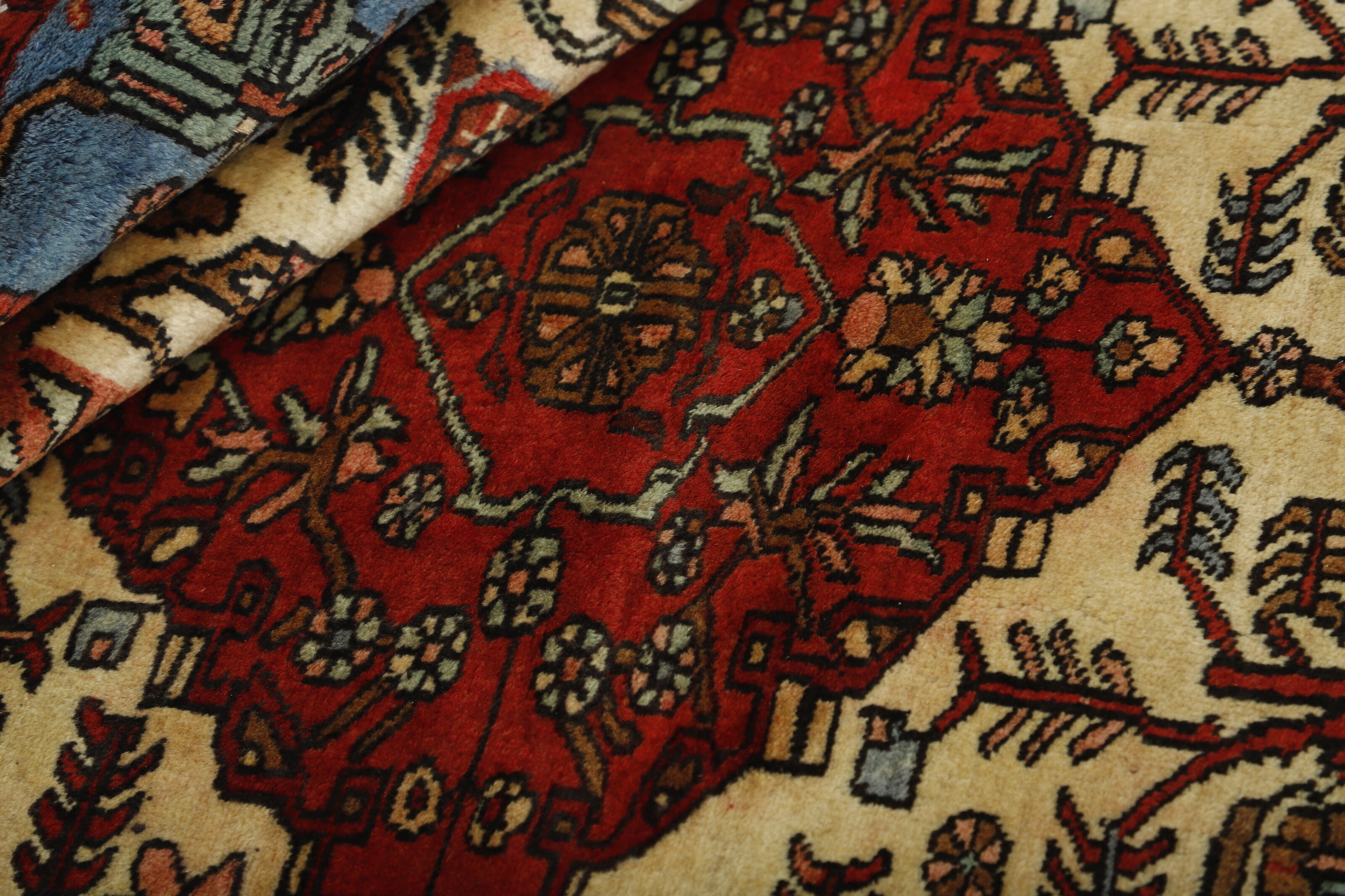 NahavandItem no.: 1514327 Size: 143 cm x 220 cmNahavand is a city of about 200.000 people, situated west of Malayer, in the southern part of the Hamadan province. The rug production is concentrated in the city itself and the surrounding villages, such as Ushvand. The rugs share many characteristics with Hamadan rugs; they have simple warps and wefts, with a wool pile and cotton warp and weft. The patterns can best be described as rural interpretations of classical patterns, with a central medallion and corners. They have warm colours, different nuances of red, as well as brown, blue, and green.