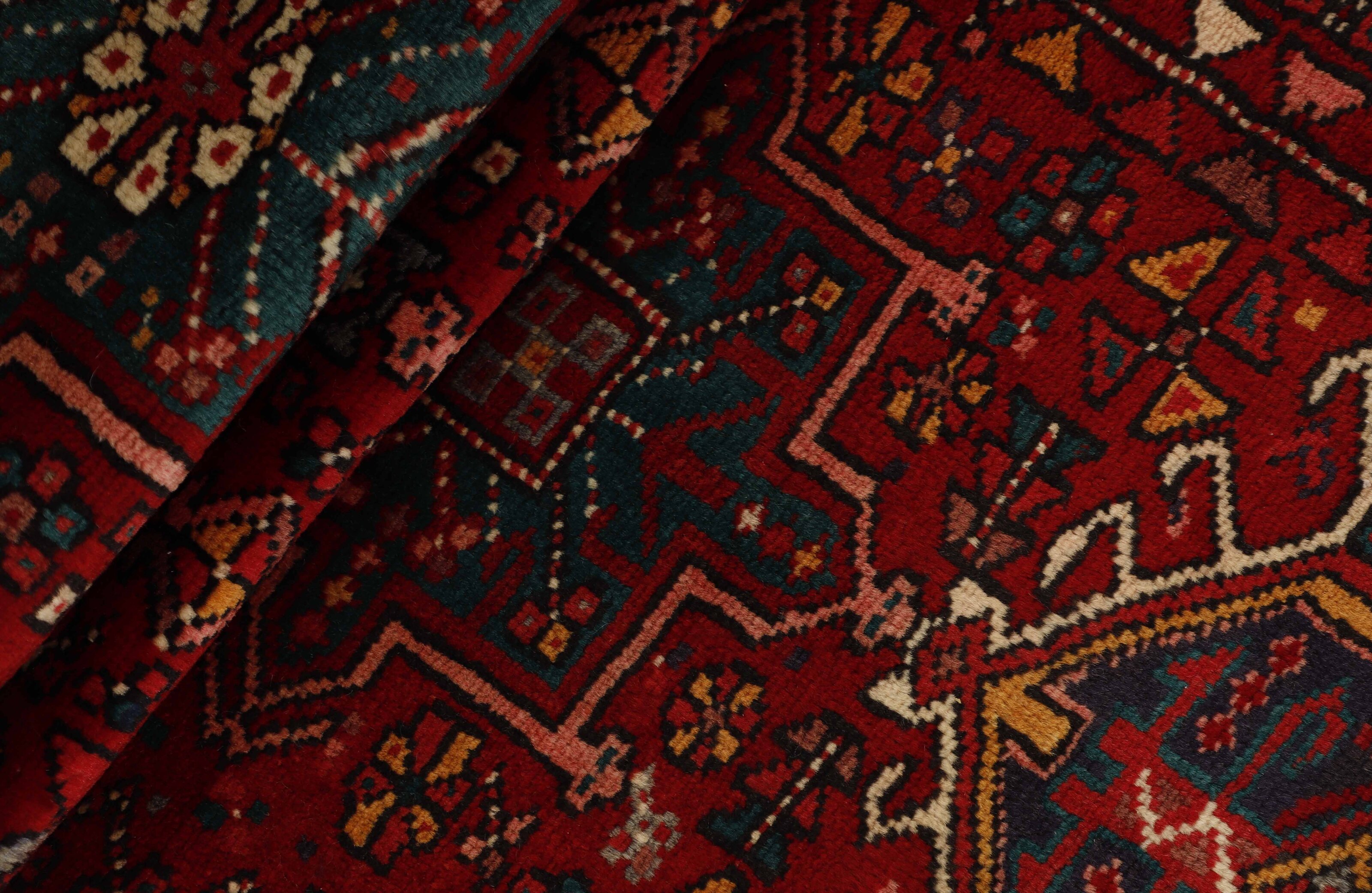 Gharadjeh, which means “The Black Mountain”, is an area in north-eastern Iran. The wool used for these rugs is of a very high quality, compared to the Tabriz wool that is otherwise used, and the resulting product is therefore very consistent. The Gharadjeh rugs are easily recognisable by their design, which consists of three medallions. The two outer ones are shaped like an eight sided star, while the central one is diamond shaped. The rugs are mostly found in earth tones, blue, and several nuances of green and yellow.