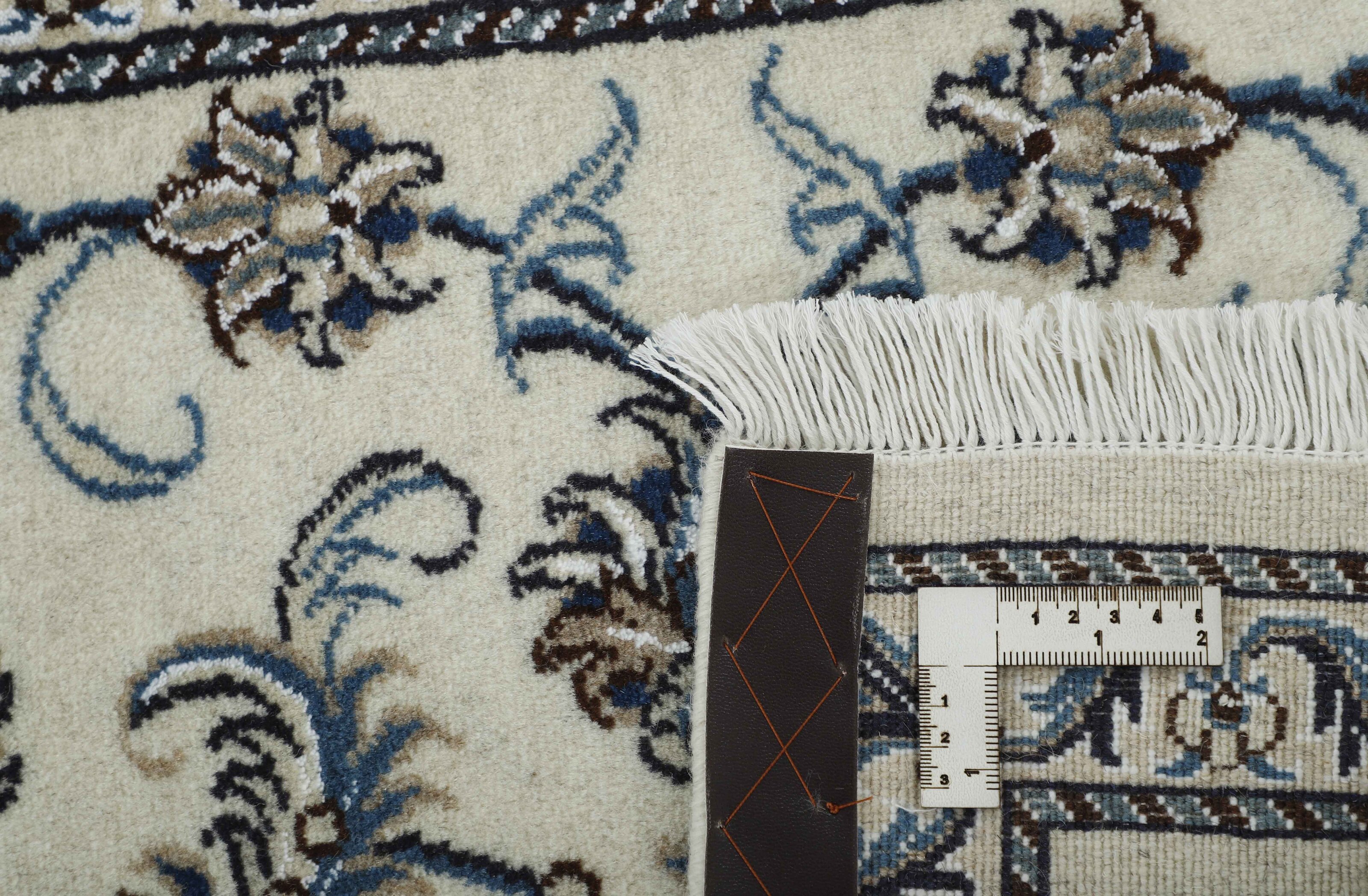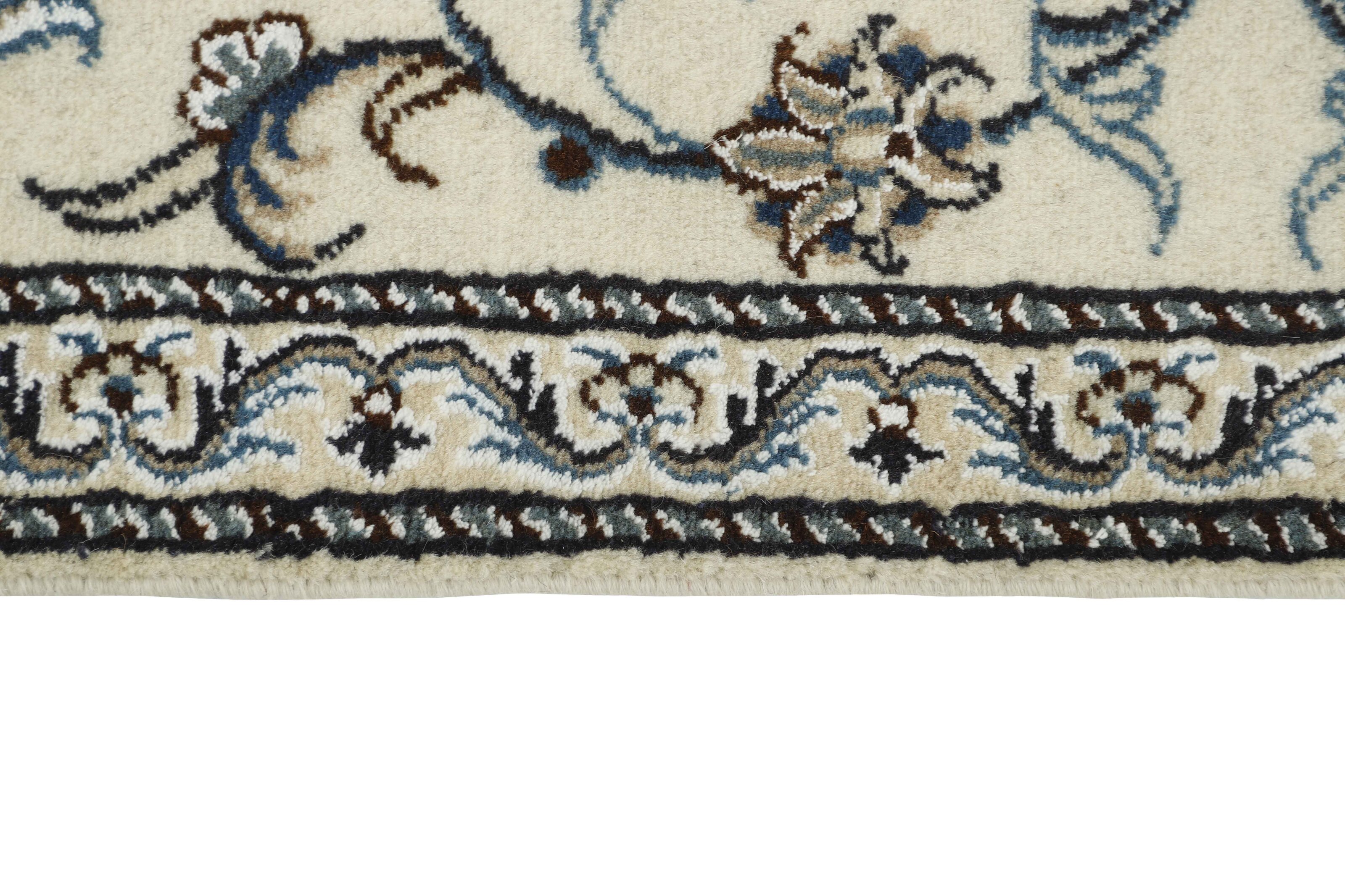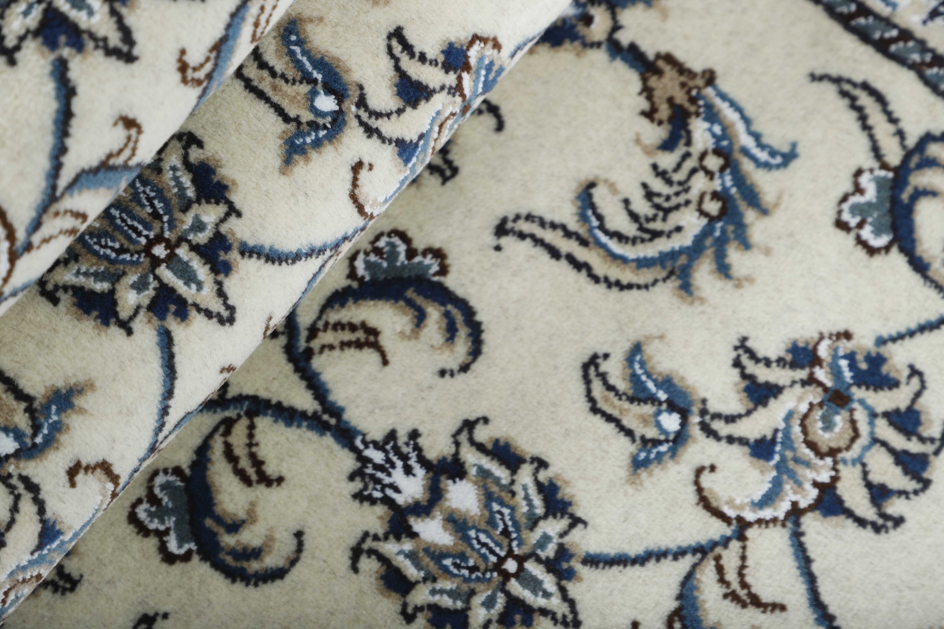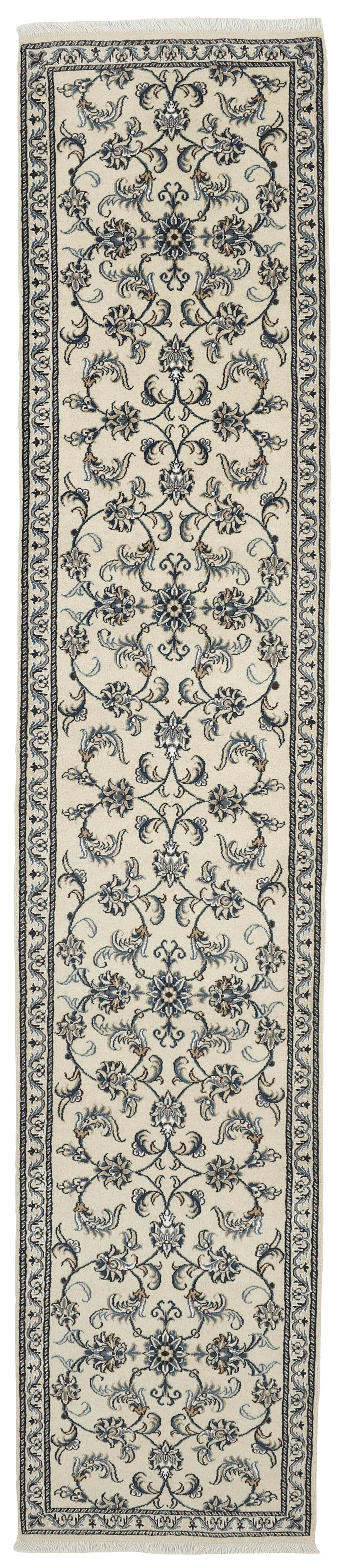 Nain KashmarItem no.: 1498559 Size: 78 cm x 389 cmNain is a city of about 50.000 people, located in the Isfahan Province. It has historic significance, since it was the last stop on caravan routes before Kavir-a-Lut, one of the deserts. The Nain Mosque is one of the oldest, and is built far better than the later and more famous mosques of Isfahan. The industry in Nain was traditionally focused on the production of wool garments, but the weavers switched to rug production when the demand fell. Their new products soon became famous, as the weavers were skilled and used good quality materials. The warp and weft are cotton, with a wool pile and contours of silk. Sometimes, silk is used more in the base. The colours are refined; nuances of ivory and cream, with small areas of red, green, and blue. As with the rugs from Isfahan, the patterns of the Nain rugs are also classical. The Nain rugs are made in all sizes, including the very large of up to 60m2, and some of these have a pure silk pile. The largest Nain rug produced was 20 by 20 metres.